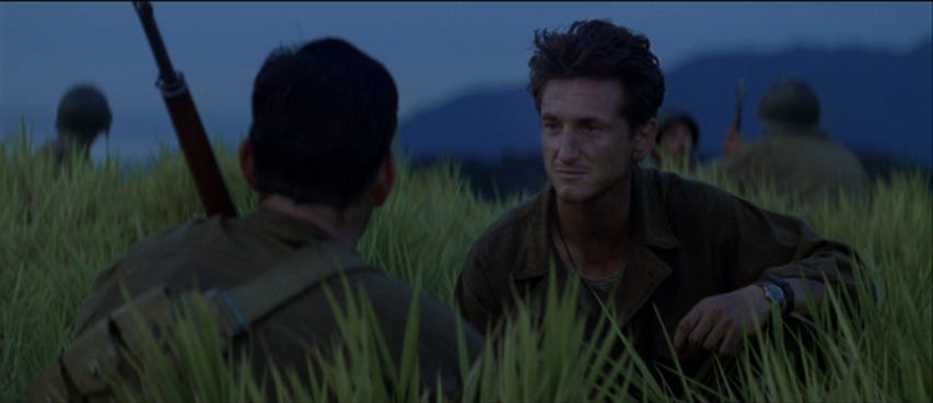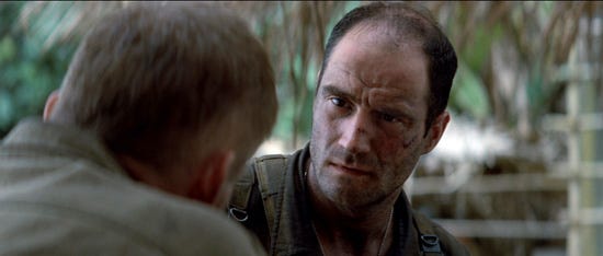 We are seeing two conflicting philosophies around the value of human life. Lt. Col. Tail wants to use his men as expendable pawns when Cpt. Staros understands they are all young men, not just soldiers of war. This sprawling war epic covers a lot of explosive combat. However, this is much more than an action film. These moments of moral conflict between commanding officers are crucial to understanding why the soldiers have such spiritual journeys. Memories return to the soldiers as their lives flash before their eyes. The Thin Red Line is hauntingly realistic in many ways. The combat was dangerous, but the psychological torture of war may be just as horrific.