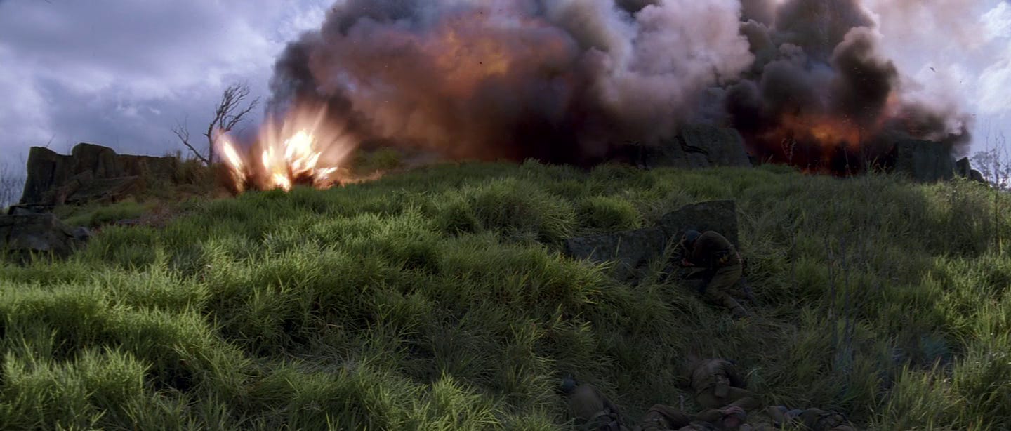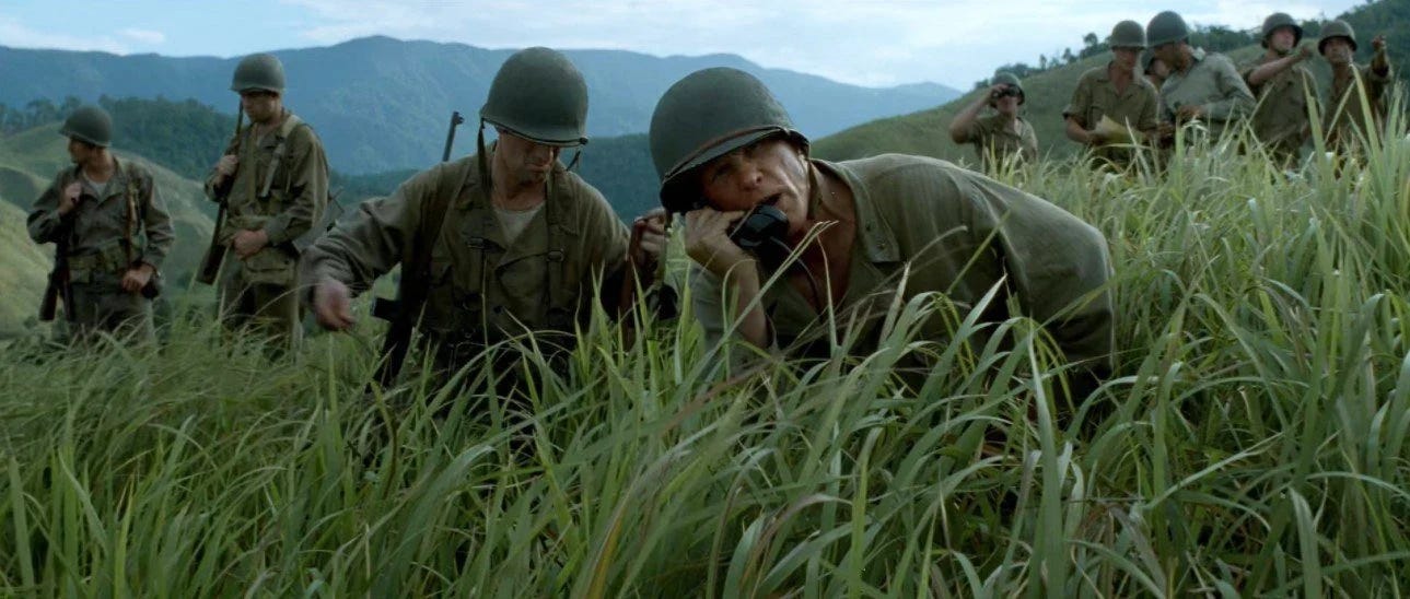 The next day, the men finally reach the bunker on the hill when the machine gun turret starts firing again. This same gun was chewing up the US soldiers merely hours ago. They had to figure out a way to stop this enemy fire. These scenes feel claustrophobic and haunting, as you can almost feel the bullets and explosions. When the battalion finally clears the bunker, the fire finally stops. We get some moments to rest, the soldiers, and the audience.